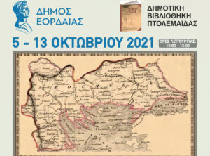 Οι βιβλιοθήκες της Μακεδονίας ενώνουν τις δυνάμεις τους, με πρωτοβουλία του Δήμου Θεσσαλονίκης, για να τιμήσουν την επέτειο των 200 χρόνων από την έναρξη της Ελληνικής Επανάστασης μέσα από μια διαδημοτική έκθεση τεκμηρίων, η οποία φιλοξενείται στον Δήμο Εορδαίας από τις 5 έως τις 13 Οκτωβρίου 2021, στο χώρο του Πνευματικού Κέντρου Πτολεμαΐδας.