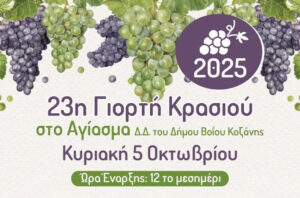 23η Γιορτή Κρασιού στο Αγίασμα από τον Πολιτιστικό Σύλλογο Αγιάσματος Βοΐου «Ο Άγιος Αθανάσιος»