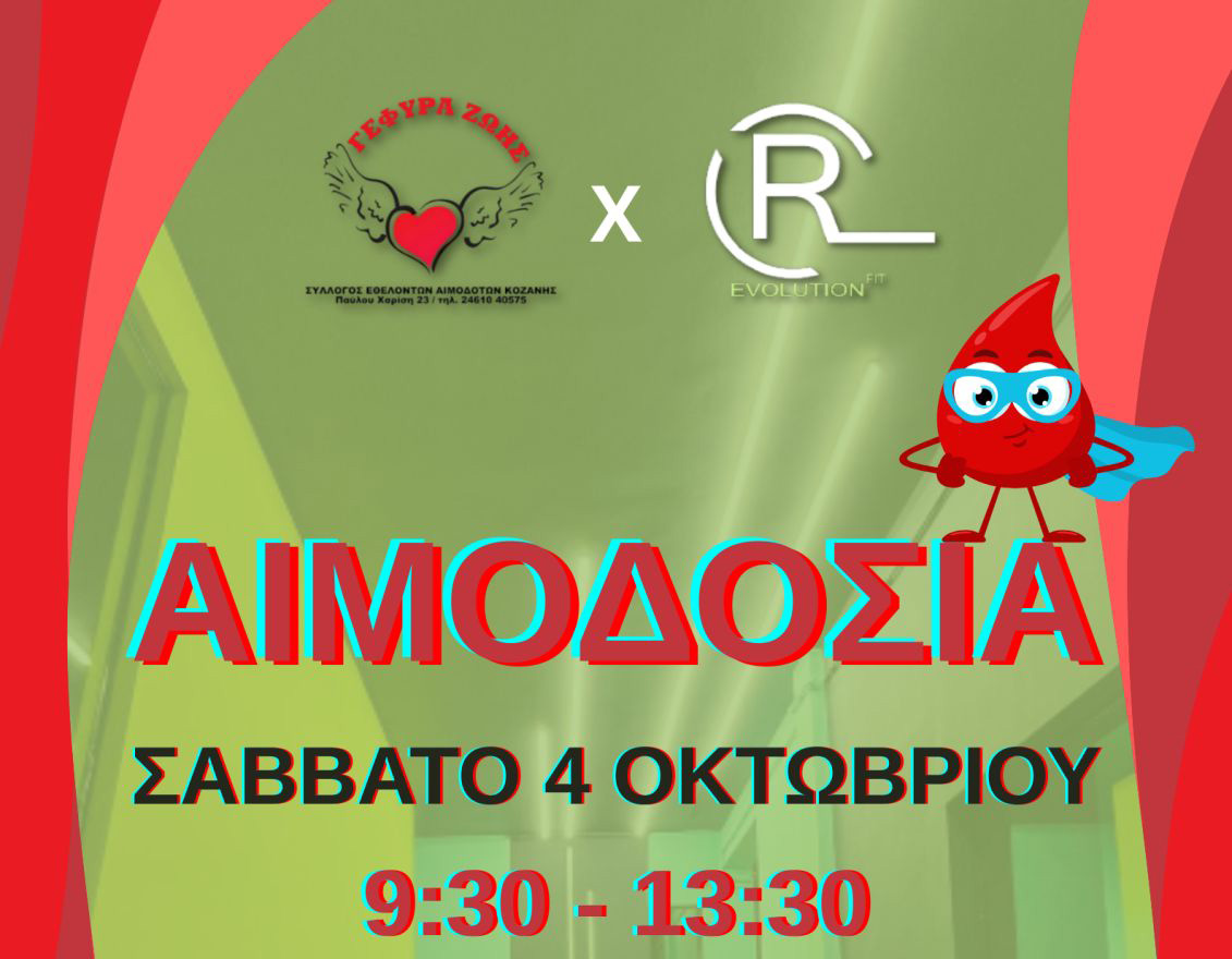 To Σάββατο 4 Οκτωβρίου 2025 από τις 09:30 – 14:00 (προσέλευση μέχρι 13:30) στο χώρο του γυμναστηρίου Revolution Fit (Ματιώς Σακελλαρίου 2) με την Αιμοδοσία του Γ.Ν. Κοζάνης.