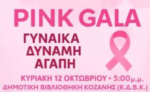 Η εκδήλωση, που έχει τον τίτλο “PinkGala”, θα πραγματοποιηθεί την Κυριακή 12 Οκτωβρίου στην Κοβεντάρειο Δημοτική Βιβλιοθήκη Κοζάνης στις 5 το απόγευμα και στόχο έχει να ευαισθητοποιήσει το κοινό και να προσφέρει χρήσιμες πληροφορίες για την πρόληψη, την πρώιμη διάγνωση και την αντιμετώπιση του καρκίνου του μαστού.