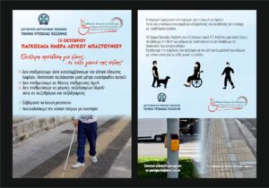 Τα ενημερωτικά φυλλάδια περιέχουν συμβουλές γύρω από τα ζητήματα ασφαλούς μετακίνησης των Ατόμων με Αναπηρία, με ιδιαίτερη έμφαση στα άτομα με προβλήματα όρασης, με σκοπό την ενημέρωση και ευαισθητοποίηση των πολιτών σε θέματα προσβασιμότητας και ισότιμης συμμετοχής στην κοινωνική ζωή.
