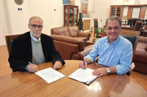 Η σύμβαση με τίτλο «ΑΝΤΙΚΑΤΑΣΤΑΣΗ ΣΤΕΓΗΣ ΣΤΗΝ ΕΚΚΛΗΣΙΑ “ΠΑΝΑΓΙΑ ΒΛΑΧΕΡΝΩΝ” ΚΑΙ ΣΤΟΝ ΧΩΡΟ ΕΚΔΗΛΩΣΕΩΝ ΣΤΗΝ Τ.Κ. ΤΕΤΡΑΛΟΦΟΥ», προϋπολογισμού μελέτης 56.000€, υπεγράφη το πρωί της Παρασκευής 17 Οκτωβρίου 2025 από τον Δήμαρχο Κοζάνης Γιάννη Κοκκαλιάρη και τον ανάδοχο Ιωάννη Βάρκα.
