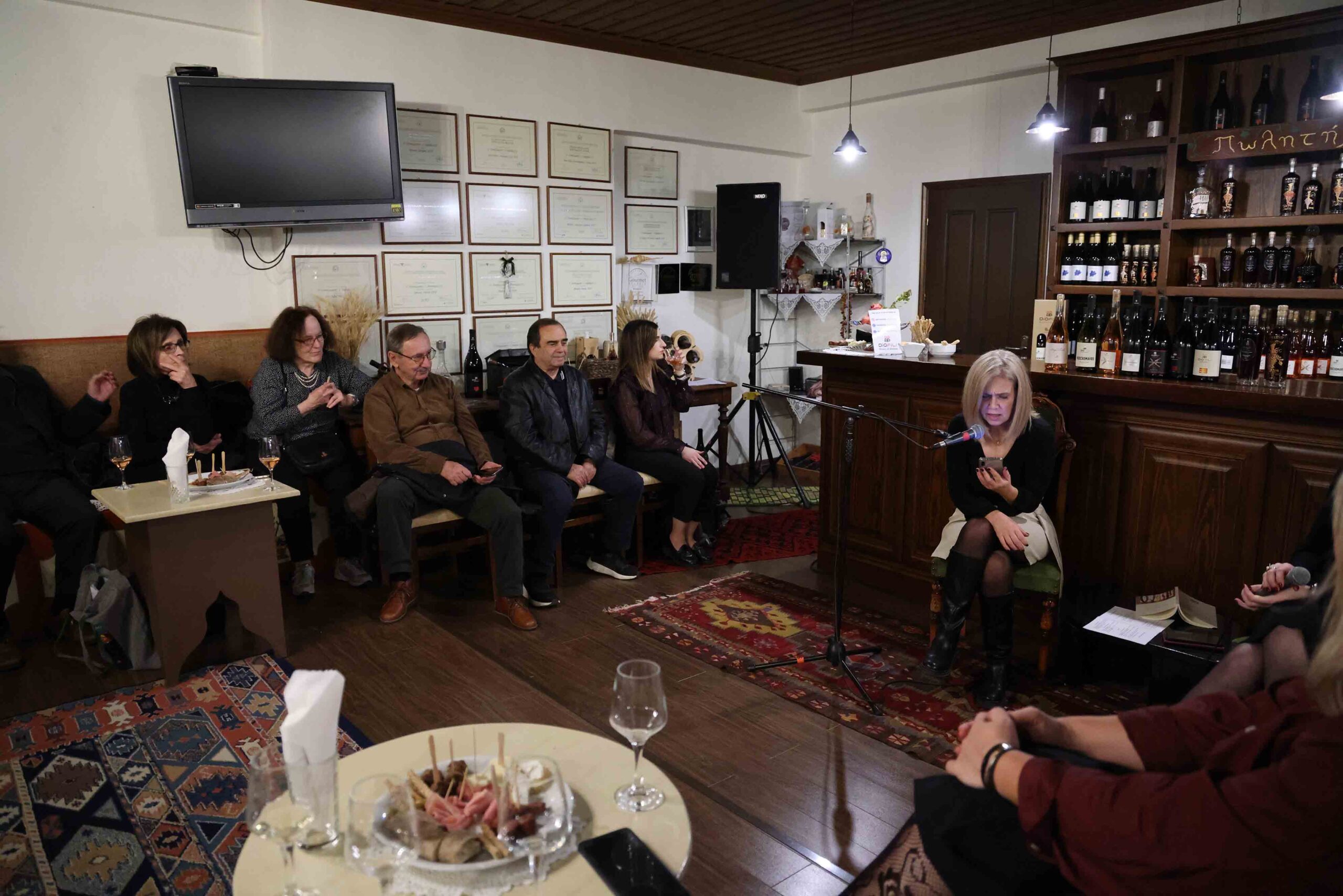 Στο πλαίσιο αυτό, πραγματοποιήθηκε και η εκδήλωση «Το κρασί των λέξεων», το Σάββατο 18 Οκτωβρίου, μια βραδιά οίνου, λόγου και μουσικής στο τοπικό οινοποιείο «ΔΥΟ ΦΙΛΟΙ» στη Σιάτιστα. Η εκδήλωση αποτέλεσε μια ξεχωριστή εμπειρία πολιτισμού και γεύσης, όπου η λογοτεχνία συνάντησε τη γη και την παραγωγή του τόπου. Το πρόγραμμα ξεκίνησε με ξενάγηση στους χώρους του οινοποιείου, κατά τη διάρκεια της οποίας οι συμμετέχοντες είχαν την ευκαιρία να γνωρίσουν από κοντά τη διαδικασία παραγωγής του τοπικού κρασιού και να συνομιλήσουν με τους οινοπαραγωγούς για την ιστορία και τις προοπτικές του προϊόντος. Ακολούθησε γευσιγνωσία εκλεκτών τοπικών οίνων, συνοδευόμενη από εκδήλωση λόγου και μουσικής, που ανέδειξε τον συμβολικό και ουσιαστικό διάλογο ανάμεσα στη λογοτεχνική δημιουργία και την παραγωγική δραστηριότητα της περιοχής. Η εκδήλωση επεσήμανε τη δυνατότητα σύμπραξης πολιτισμού και επιχειρηματικότητας, προβάλλοντας το κρασί ως στοιχείο ταυτότητας και πολιτιστικής έκφρασης.