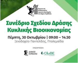 Ο Δήμος Εορδαίας σε συνδιοργάνωση με το Cluster Βιοοικονομίας και Περιβάλλοντος Δυτικής Μακεδονίας (CluBE), σας προσκαλούν να παρακολουθήσετε το Συνέδριο Σχεδίου Δράσης Κυκλικής Βιοοικονομίας του Δήμου Εορδαίας.