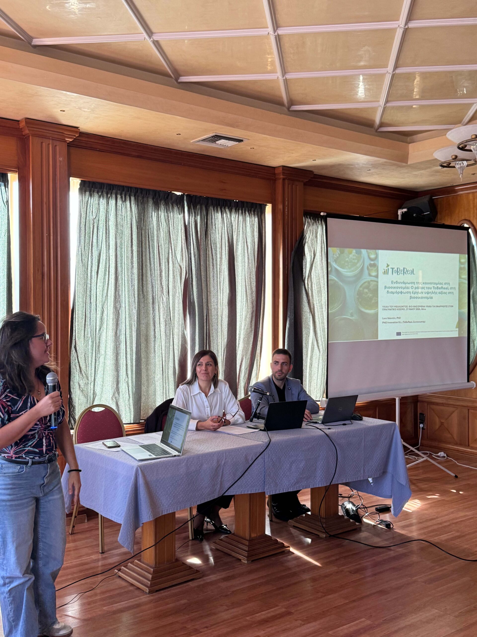 Παράλληλα, στο συνέδριο συμμετείχαν και οι εταίροι του ευρωπαϊκού έργου ToBeReal (Horizon Europe), το οποίο παρέχει τεχνογνωσία και καθοδήγηση σχετικά με διαθέσιμες χρηματοδοτικές ευκαιρίες στον τομέα της βιοοικονομίας. Η LaraValentin, συντονίστρια του ToBeReal, παρουσίασε το έργο και μοιράστηκε τους τρόπους με τους οποίους κάποιος φορέας μπορεί να επωφεληθεί από τις υπηρεσίες του.