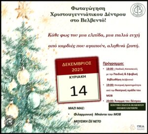 Την Κυριακή 14 Δεκεμβρίου, η γιορτινή ατμόσφαιρα ξεκινά νωρίς στην Κεντρική Πλατεία Βελβεντού με πλούσιες δραστηριότητες για τα παιδιά από το απόγευμα! Παιχνίδια, δημιουργικές δράσεις και εκπλήξεις θα ζεστάνουν το κλίμα και θα γεμίσουν χαμόγελα τους μικρούς μας φίλους.