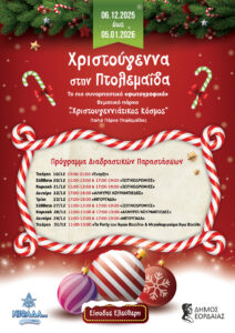 Ο Δήμος Εορδαίας σας προσκαλεί στην φωταγώγηση του Χριστουγεννιάτικου Δέντρου και στην χριστουγεννιάτικη συναυλία στην Κεντρική Πλατεία Πτολεμαΐδας.