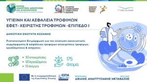 Το Επιμελητήριο Κοζάνης, σε συνεργασία με τη ΜΕΤΑΒΑΣΗ Μ.Α.Ε. – Κέντρα Ανάπτυξης Δεξιοτήτων & Απασχόλησης και το Σωματείο Καφετεριών & Εστίασης Κοζάνης «Ο Ερμής», ανακοινώνουν την επιτυχή ολοκλήρωση του Α’ κύκλου του δωρεάν εκπαιδευτικού προγράμματος «Ασφάλεια & Υγιεινή Τροφίμων (ΕΦΕΤ) – Επίπεδο 1»