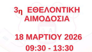 Την Τετάρτη 18 Μαρτίου και ώρα 09:30 – 13:30, θα πραγματοποιηθεί η 3η εθελοντική αιμοδοσία της Περιφέρειας Δυτικής Μακεδονίας, στο Διοικητήριο  στην Περιοχή ΖΕΠ (ισόγειο), σε συνεργασία με κινητό συνεργείο της υπηρεσία αιμοδοσίας του  «ΜΑΜΑΤΣΕΙΟΥ»  Γενικού Νοσοκομείου Κοζάνης καιτο Σύλλογο Εθελοντών Αιμοδοτών Κοζάνης «Γέφυρα Ζωής».
