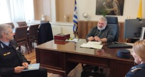Τον Δήμαρχο Εορδαίας Παναγιώτη Πλακεντά επισκέφθηκε χθες Πέμπτη ο Διοικητής των Πυροσβεστικών Ακαδημιών του Πυροσβεστικού Σώματος, Υποστράτηγος Κυπριωτέλλης Παναγιώτης συνοδευόμενος από την Διοικήτρια της Πυροσβεστικής Ακαδημίας Πτολεμαΐδας, Πύραρχο Αρχοντία Σερέτη.