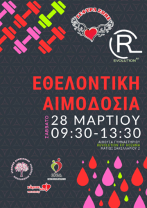 Το Σάββατο 28 Μαρτίου, από τις 09:30 έως τις 13:30, σας περιμένουμε στην εθελοντική αιμοδοσία που θα πραγματοποιηθεί σε συνεργασία με το Γυμναστήριο Revolution Fit,(Ματιώς Σακελλαρίου 2) και το Τμήμα Αιμοδοσίας του Μαμάτσειου Νοσοκομείου Κοζάνης, ενισχύοντας το πολύτιμο έργο της εθελοντικής αιμοδοσίας στην τοπική μας κοινωνία.