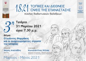 Ο Σύνδεσμος Φιλολόγων Κοζάνης, τιμώντας τον επετειακό εορτασμό των 200 χρόνων από την κήρυξη της Επανάστασης του 1821, διοργανώνει έναν κύκλο διαδικτυακών συζητήσεων με τίτλο «1821: Τοπικές και διεθνείς όψεις της Επανάστασης», υπό την αιγίδα της Περιφέρειας Δυτικής Μακεδονίας, κάθε Τετάρτη στις 7:30 μ.μ., από τον Μάρτιο μέχρι και τον Μάιο του 2021.