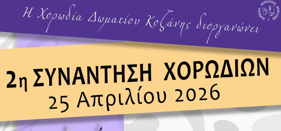 Η Χορωδία Δωματίου Κοζάνης έχει την τιμή να διοργανώσει τη 2η Συνάντηση Χορωδιών, ένα πολιτιστικό γεγονός που φέρνει κοντά εξαιρετικές χορωδίες και φωνητικά σύνολα στην καρδιά της Δυτικής Μακεδονίας. Η εκδήλωση θα πραγματοποιηθεί το Σάββατο 25 Απριλίου 2026 και ώρα 19:00, στην Αίθουσα Τέχνης του Δήμου Κοζάνης. Στη φετινή συνάντηση, το κοινό θα έχει την …