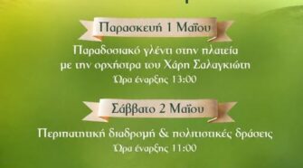 Πέμπτη 30 Απριλίου | 20:00 Νεάπολη Έντεχνη Μουσική Βραδιά με τους Argon Music Band After Hour Stage DJ Argiris Tsaknakis Παρασκευή 1 Μαΐου | 13:00 DJ FOX Παράλληλες δράσεις: Ιππασία • Ποδόσφαιρο • Μπάσκετ • Beach Volley Νησάκι Νεάπολης Σας περιμένουμε όλους να γιορτάσουμε μαζί την άνοιξη με μουσική, δράση και όμορφη διάθεση! Β.Γ.