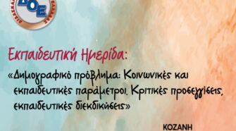 Το Δ.Σ. της Δ.Ο.Ε. σε συνεργασία με τον Σύλλογο Εκπαιδευτικών Π.Ε. Κοζάνης, διοργανώνουν επιστημονική ημερίδα με θέμα: «Δημογραφικό πρόβλημα: Κοινωνικές και εκπαιδευτικές παράμετροι. Κριτικές προσεγγίσεις, εκπαιδευτικές διεκδικήσεις», την Τετάρτη 25 Φεβρουαρίου 2026, ώρα 9.00–15.00 στην αίθουσα συνεδριάσεων Δημοτικού Συμβουλίου Κοζάνης Κοβεντάρειο. Κύριοι ομιλητές της εκδήλωσης θα είναι οι: Κοτζαμάνης Βύρων, Αφ. Καθηγητής Δημογραφίας, στο Τμήμα …