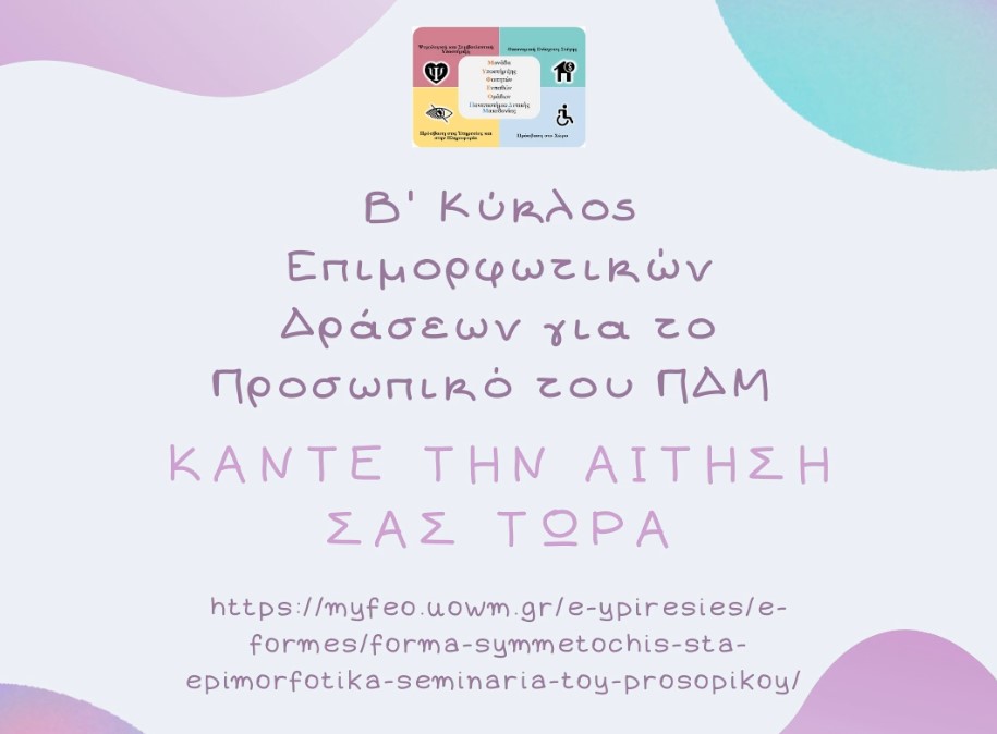 Ανακοίνωση για Β κύκλο Επιμορφωτικών Δράσεων ΜΥΦΕΟ
