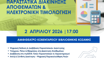 Το Επιμελητήριο Κοζάνης, σε συνεργασία με τη Μετάβαση Μ.Α.Ε., την Ε.Φ.Ε.Ε. Επαρχίας Βοΐου, την Ε.Φ.Ε.Ε. Ν. Κοζάνης (Πτολεμαΐδα) και την Ένωση Λογιστών Κοζάνης, συνδιοργανώνουν διακλαδική επιμορφωτική δράση με τίτλο: «Παραστατικά Διακίνησης Αποθεμάτων & Ηλεκτρονική Τιμολόγηση» Η πρωτοβουλία αυτή εντάσσεται σε ένα ευρύτερο πλαίσιο θεσμικής συνεργασίας για την ενίσχυση της ψηφιακής και κανονιστικής επάρκειας των επιχειρήσεων …