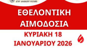 Την Κυριακή 18 Ιανουαρίου 2026, από 09:30 έως 13:30, στον χώρο του Πολιτιστικού Συλλόγου Αγίου Αθανασίου, δίνουμε όλοι μαζί ένα πολύτιμο δώρο ζωής: προσφέρουμε αίμα. Σε συνεργασία με το Τμήμα Αιμοδοσίας του Γενικού Νοσοκομείου Κοζάνης, τον Πολιτιστικό Σύλλογο Αγίου Αθανασίου και τον Σύλλογο Γονέων & Κηδεμόνων του 13ου Δημοτικού Σχολείου, μετατρέπουμε την αγάπη μας για …